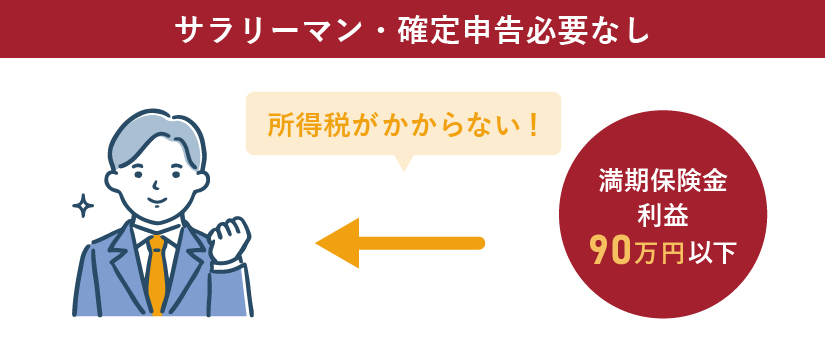 サラリーマンで副業収入などがなく確定申告をしない人は、満期保険金利益が90万円以下であれば所得税がかかりません。