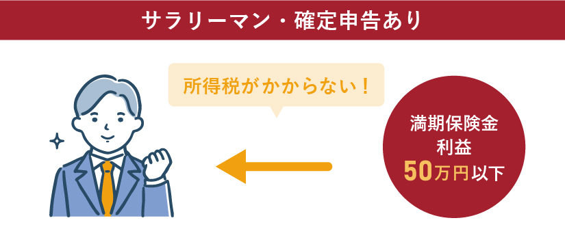 サラリーマンで副業をしている等、確定申告をする方は、満期保険金での利益50万円以下の場合は満期保険金に所得税がかかりません。