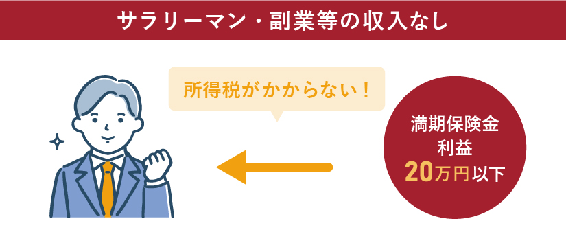 - 副業等の所得のない人は、満期保険金の年間利益20万円以下は所得税がかからない