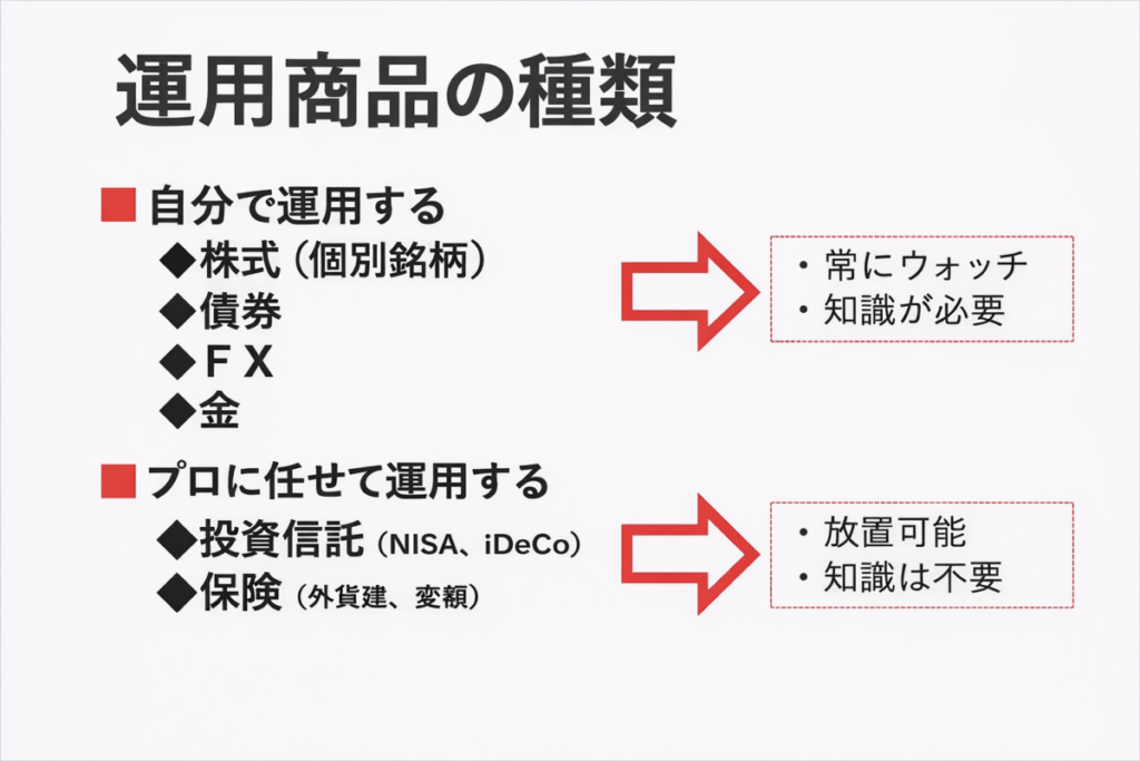 なぜなら、運用をプロにお任せできると、商品の選択さえすれば、あとは10年間程度ほったらかしにできるからです。