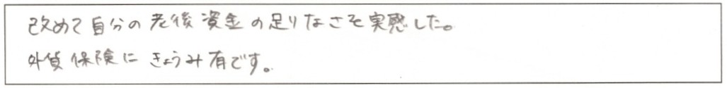 老後のお金に困らないための今から始める資産運用セミナー改めて自分の老後資金の足りなさを実感した。外貨保険にきょうみ有です。