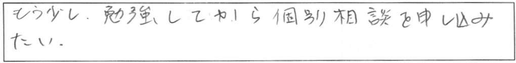 来月もセミナーがあると伺いましたので、今回の内容を踏まえて、自分で情報収集し、また勉強したいと思います。