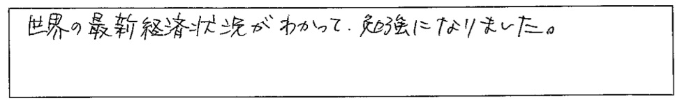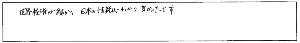 クライアントセミナー(高知)世界経済が解かり日本の情報がわかり良かったです。