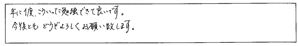 クライアントセミナー(高知)年に1度、こういった勉強できて良いです。今後ともどうぞよろしくお願い致します。