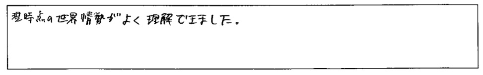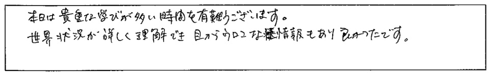クライアントセミナー(高知)現時点の世界情勢がよく理解できました。