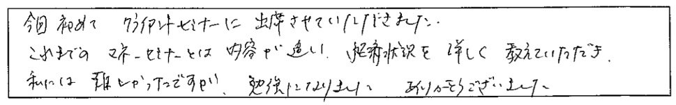 クライアントセミナー(高知)初めて参加させて頂きました。資産形成も始めたばかりで…ありがとうございました。