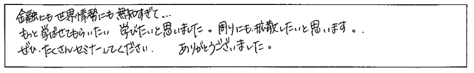 クライアントセミナー(高知)金融にも世界情勢にも無知すぎて…もっと学ばせてもらいたい学びたいと思いました。