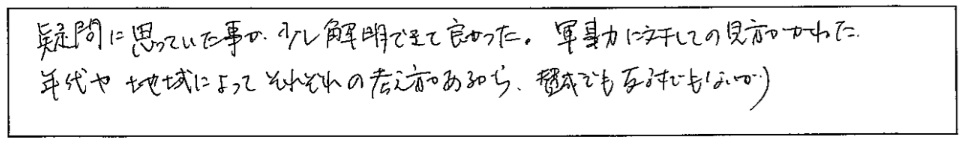 クライアントセミナー(高知)疑問に思っていた事が少し解明できて良かった。軍事力に対しての見方がかわった。