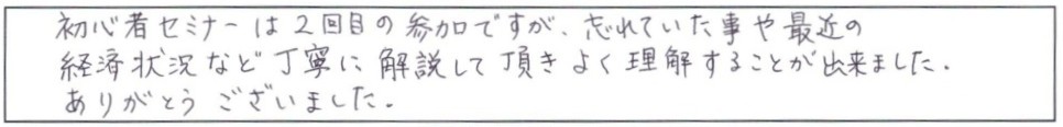 保険の選び方老後資金資産運用初心者マネー初心者向け基礎講座説明会がとても分かりやすく、噛み砕いた言葉を使っていただき、ありがとうございました。全てを吸収する事が難しかったので、ぜひ復習したいと思います。