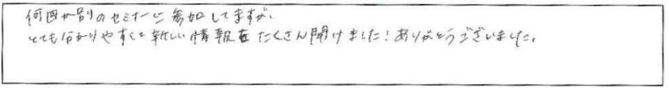何度かセミナーに参加することで新たな発見があったり理解が深まりますね。また相談に来ていただくとさらに理解が深まりますよ。