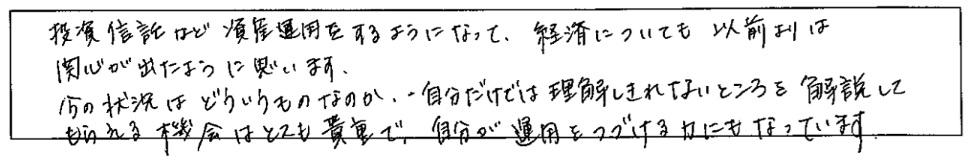 クライアントセミナー(高知)投資信託など資産運用をするようになって、経済についても以前よりは関心が出たように思います。
