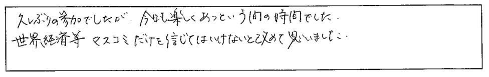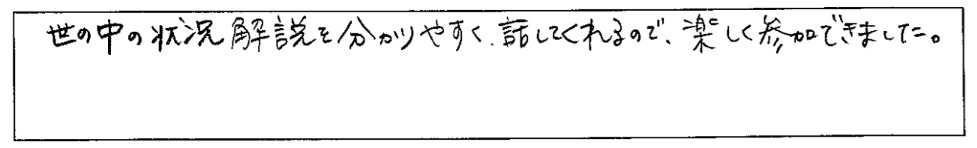 クライアントセミナー(高知)世の中の状況解説を分かりやすく話してくれるので、楽しく参加できました。