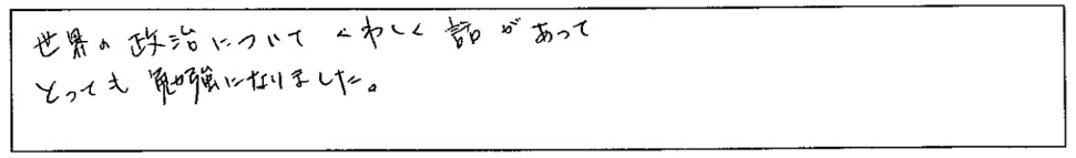 クライアントセミナー(高知)世界の政治についてくわしく話があってとっても勉強になりました。