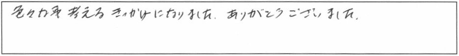 老後資金遺言介護認知症相続65歳からのマネープラン基礎講座(老後資金・終活・相続)色々な事考えるきっかけになりました。ありがとうございました。