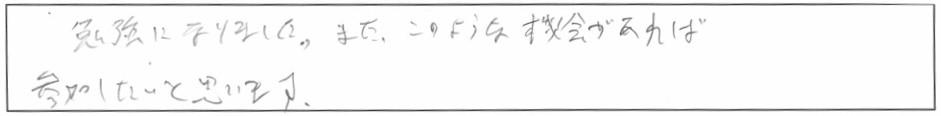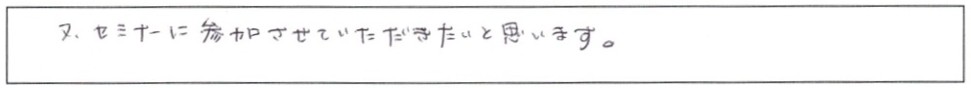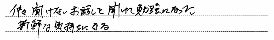 クライアントセミナー(金沢)仲々聞けないお話しを聞けて勉強になった。新鮮な気持ちになる。
