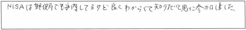 IFANISA投資信託資産運用初心者新NISAを知る(資産運用の基礎、投資信託の選び方)NISAのこと、詳しく教えてもらい有意義でした。