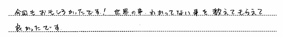 クライアントセミナー(金沢)今回もおもしろかったです!世界の事、わかってない事を教えてもらえて良かったです。