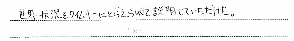 クライアントセミナー(金沢)世界の情勢が大きく変化すると感じているので知りたい情報を聞くことができて良かった。