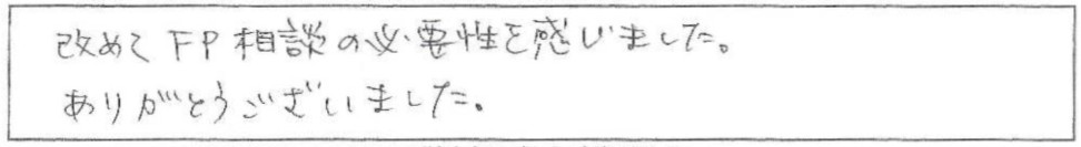 老後資金遺言介護認知症相続60歳からのマネープラン基礎講座(老後資金・終活・相続)個別相談受けました。ありがとうございました。いろいろと勉強になりました。