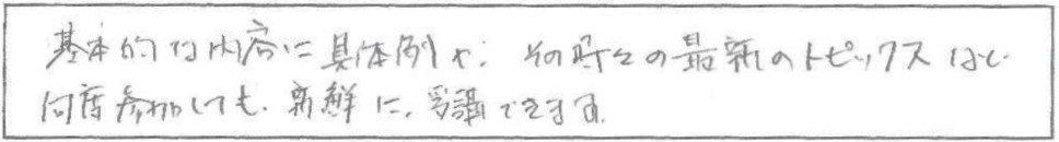 最近何度かこちらのセミナーに参加させていただいて、少しずつですが、お金のことが理解できるようになってきました。 -