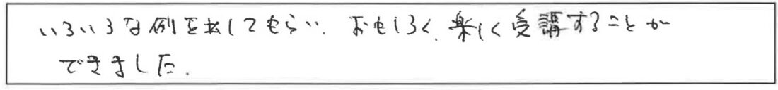 老後資金遺言介護認知症相続65歳からのマネープラン基礎講座(老後資金・終活・相続)いろいろな例を出してもらい、おもしろく楽しく受講することができました。
