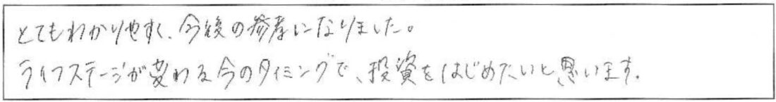 担当FPよりセミナー受講いただき、ありがとうございました。ご自身で見直しが難しい場合はお気軽にご相談下さい。 -