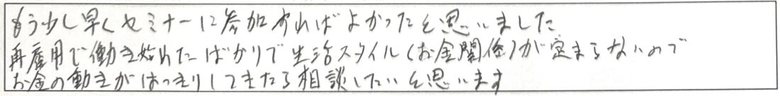 再雇用で働き始めたばかりで生活スタイル(お金関係)が定まらないのでお金の動きがはっきりしてきたら相談したいと思います。