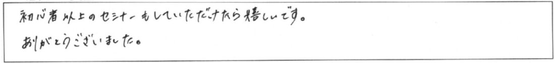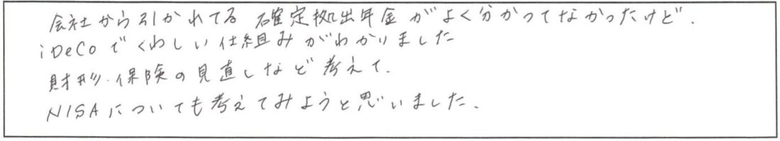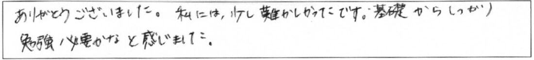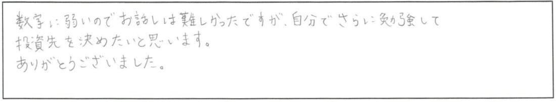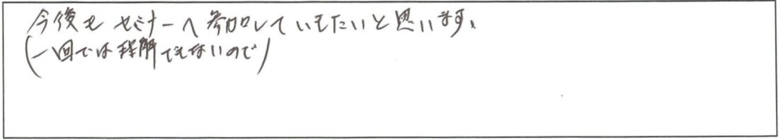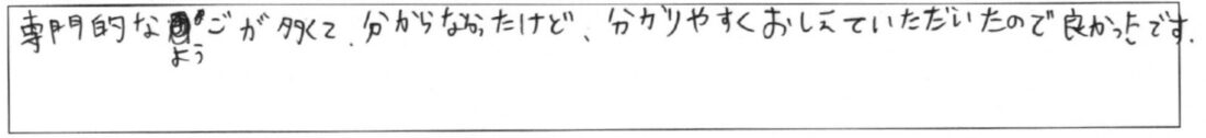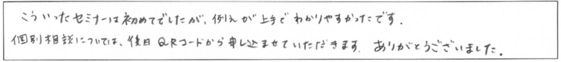 まだまだ、勉強不足でわからない単語も多くありましたので、基礎講座を受講してから個人相談を利用しようと思います。 -