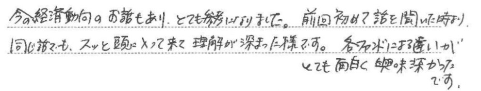 仙台クライアントセミナー【経済状況、出口戦略、投資信託の復習】具体的にお話しをいただき、良かったです。