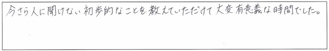 とても分かりやすく、雑談もふまえつつだったので良い時間になりました。個別相談も参加しようと思うので、今後もよろしくお願いします。