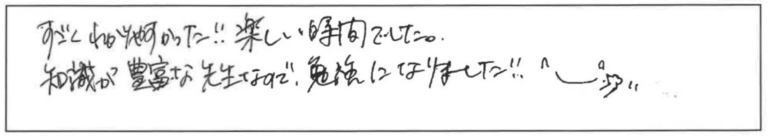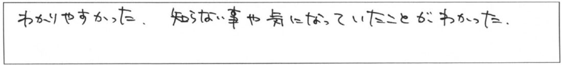 わかりやすい説明で、もっと勉強をしたいと感じました。ありがとうございました。
