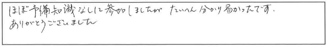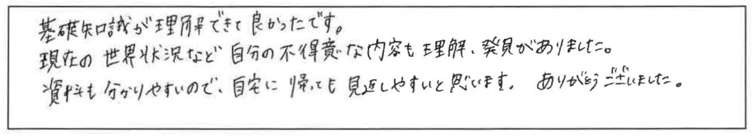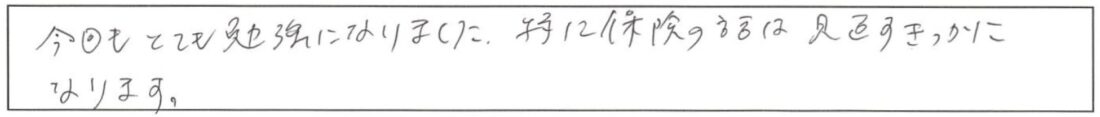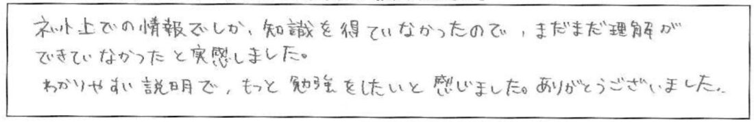 資料も分かりやすいので、自宅に帰っても見返しやすいと思います。ありがとうございました。