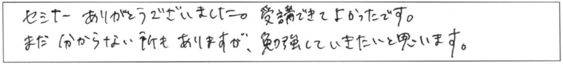 担当FPよりご感想ありがとうございます。セミナーはリピーターの方も多いです。2回目だと初回より理解が深まりますね。保険も投資も早く始めた方が有利になる場合が多いです。