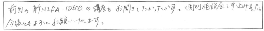 老後資金IFANISA投資信託50代からのリタイア資産の作り方ご講演ありがとうございました。とても参考になりました。