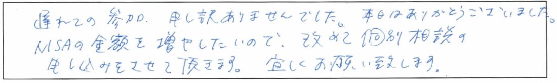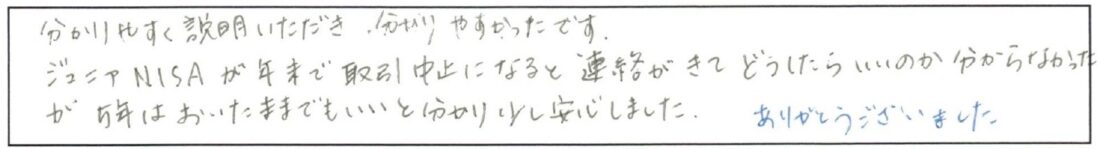 NISAの金額を増やしたいので、改めて個別相談の申し込みをさせて頂きます。宜しくお願い致します。