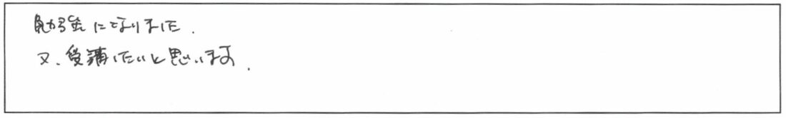 ありがとうございました。機会があればまたよろしくお願いいたします。 -