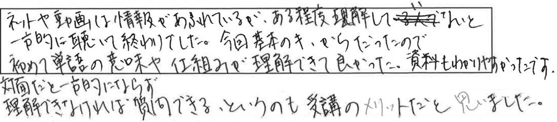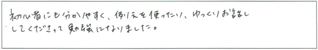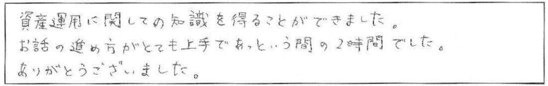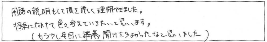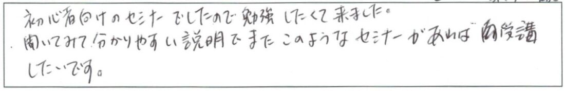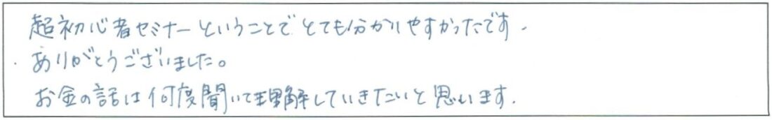 担当FPより超初心者向けセミナーですので このようなご意見をいただき大変うれしく思います。