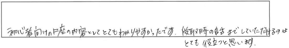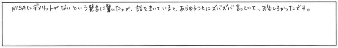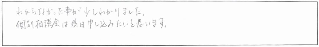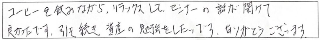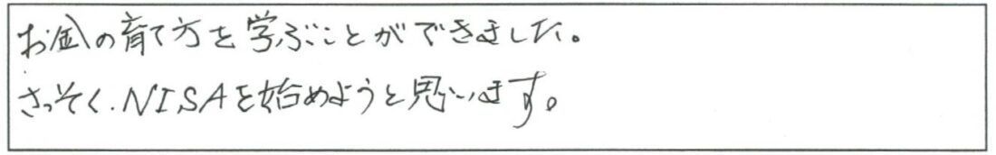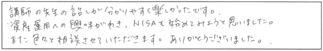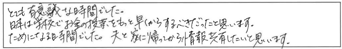 ためになる時間でした。夫と家に帰ってから情報共有したいと思います。