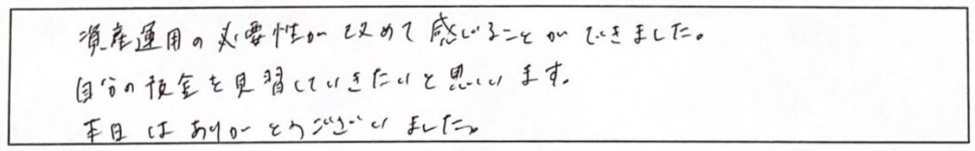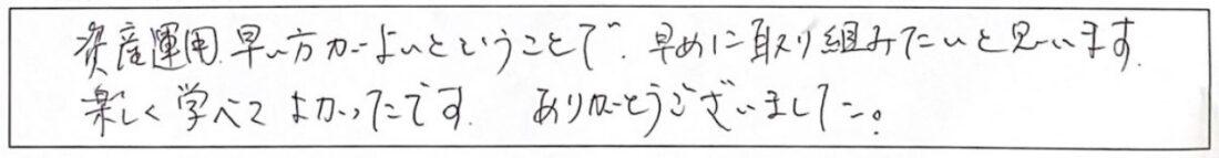担当FPよりセミナーをご受講頂きありがとうございました。