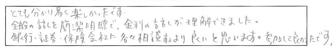 全般の話しを簡潔明瞭で、金利の話しが理解できました。
