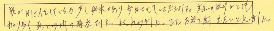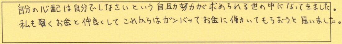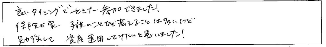担当FPよりこのセミナーをきっかけに少しでも人生にお役に立てれば幸いです。スタッフへのコメントもありがとうございます。 -