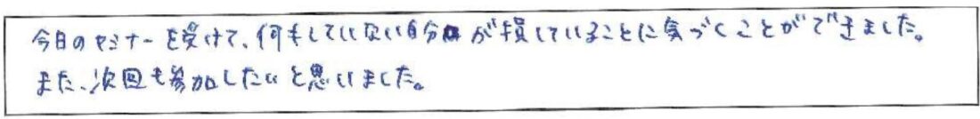 先生の説明がとてもわかり易くあっという間の講座でした。よくわかりました。またお話を聞きたいと思いました。