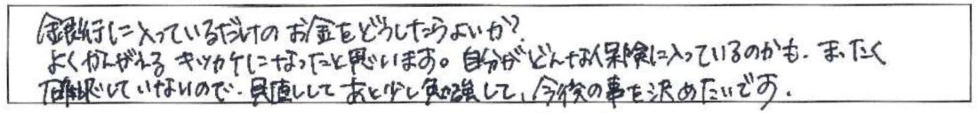 保険の選び方老後資金資産運用初心者オトナ女子のためのお金の勉強会とても勉強になりました。今後も知識を増やしていきたいと思います。